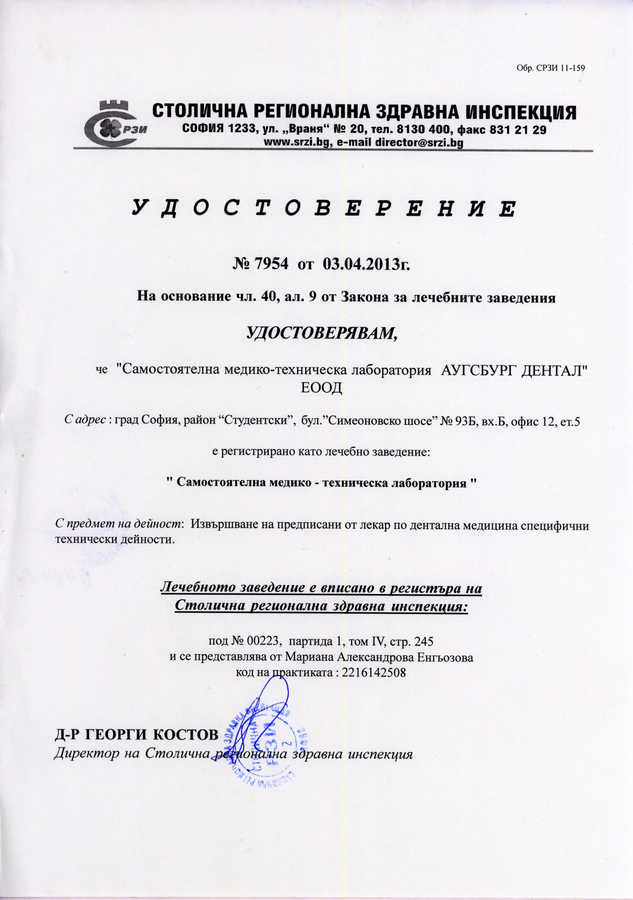 SMTL AUGSBURG DENTAL Ltd., гр.София, бул. Симеоновско шосе 93Б, вход Б, тел.: 02 4265123 - вижте карта и подробности в "контакт"